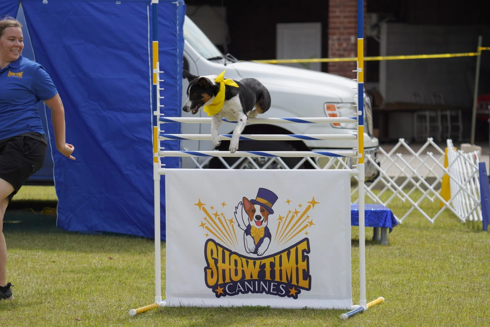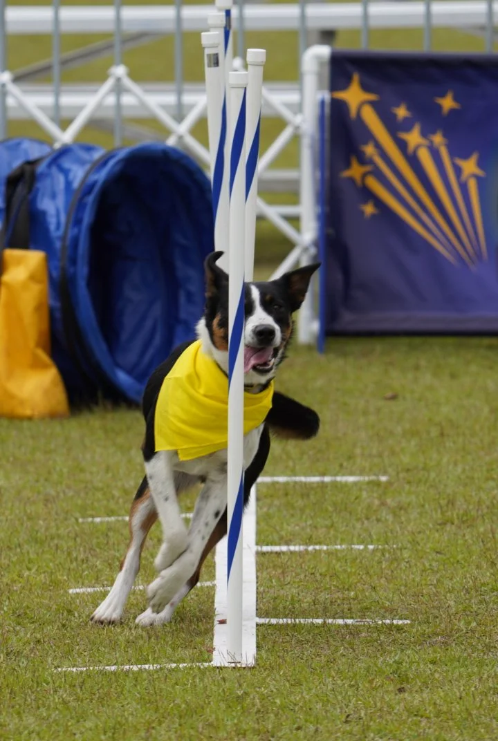 Voodoo is fast, focused, and full of bounce—this guy was built for action. With endless energy and a love for fetch, he shines brightest when he’s flying through the air or working hard in the ring. He came from Come Bye Border Collie Rescue in Indiana and has been making magic with the Showtime Canines crew ever since.